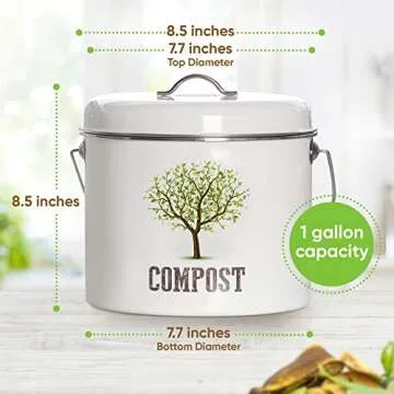 Third Rock Kitchen Compost Bin Countertop – 1.0 Gallon Compost Bucket for Kitchen – Small Compost Bin – Compost Bin Kitchen Counter - Countertop Compost Bins for Kitchen includes Charcoal Filter