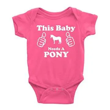This Baby Needs a Pony - Short Sleeve Horse Bodysuit for Infant Boys Girls and Surprises (Raspberry, 6 Months)
