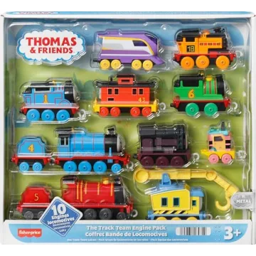 Show more Introduce your child to the fascinating world of trains with the Thomas & Friends Diecast Toy Trains: The Track Team Engine Pack! Designed for little hands, this delightful set includes 10 push-along vehicles featuring beloved characters from Thomas & Friends: All Engines Go!. This vibrant, engaging collection is perfect for pretend play and imaginative storytelling, stimulating your child's creativity while promoting fine motor skills. Crafted from durable diecast metal, these trains are built to last, able to withstand even the most enthusiastic playtimes. Each vehicle not only boasts vivid colors and detailed designs but also features their names on the bottom, making learning fun as your child practices letters and spelling during play. Every train's compatible plastic connectors allow children to easily attach them, fostering cooperative play and teamwork among friends.