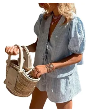 The short puff sleeves and tie front design of the shirt enhance your figure, while the loose shorts provide a relaxed fit that allows for easy movement. Whether you're going out with friends, enjoying a beach vacation, or just unwinding at home, this set strikes the perfect balance between comfort and style. With plaid and floral prints, it showcases a trendy aesthetic that's versatile for countless occasions.