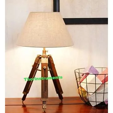 THOR INSTRUMENTS Vintage Tripod Table Adjustable Lamp Stand Tripod- Home Decor - Lamp Shade Not Included Rustic Vintage
