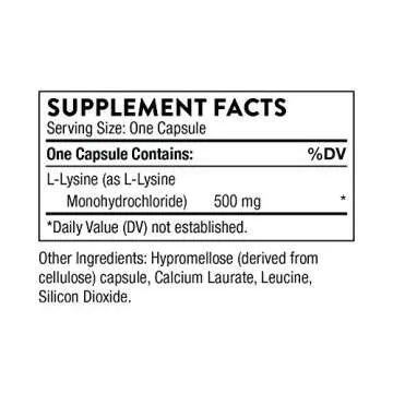 THORNE Lysine - Essential Amino Acid for Skin Health, Energy Production, and Immune Function - 500 mg - 60 Capsules