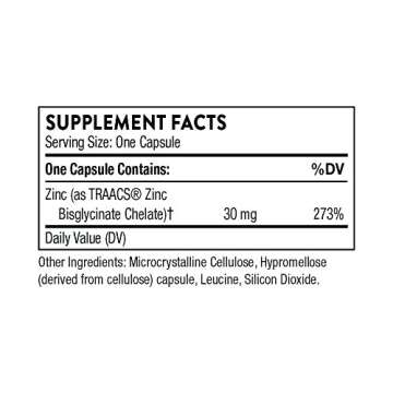 Thorne Zinc Bisglycinate 30mg - Daily Support for Skin, Eye & Immune System Health with Zinc Supplement Capsules - 60 Capsules