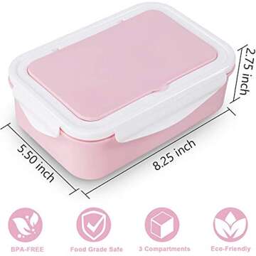 Thousanday Bento Lunch Box – 3 Compartment Box Containers – Microwave/Freezer Meal Box For Adults & Kids (Pink)