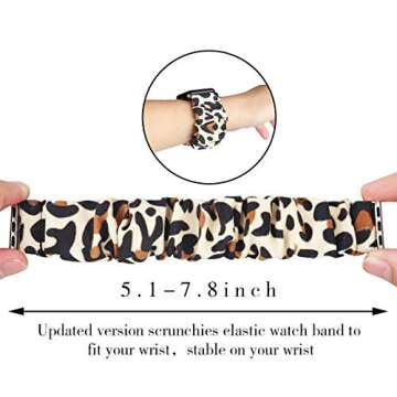 Show moreIntroducing the THOUSMOON Scrunchie Elastic Watch Band, a perfect blend of style and comfort for your Apple Watch! Designed for compatibility with 38mm, 40mm, 42mm, and 44mm models, this scrunchie band transforms your Apple Watch into a chic accessory. Available in adorable prints like Leopard, this band is not just visually appealing but is made from premium soft fabric that feels gentle against your skin.
