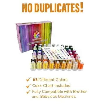 ThreadNanny 63 Colors Premium Polyester Machine Embroidery Thread Set 1100 Yards Each Spool - Compatible with Brother Babylock Singer Janome All Home Embroidery and Sewing Machines