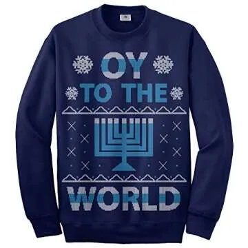 Threadrock Oy to The World Hanukkah Unisex Sweatshirt XL Navy