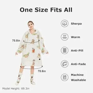 Why You Will Love This Product?The THREE POODLE Wearable Blanket Hoodie isn’t just about warmth; it’s about creating an experience. Imagine curling up on a cold evening, enveloped in this cozy blanket hoodie that provides comfort while reflecting your style. The soft touch and playful designs uplift spirits, combining practicality with fun. It’s a hug that you can wear, symbolizing warmth, love, and care, perfectly suited for anyone in need of a cozy escape on chilly days.