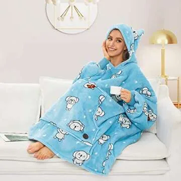 Show moreIntroducing the THREE POODLE Wearable Blanket Hoodie, the ultimate companion for warmth and comfort! This oversized sherpa blanket sweatshirt redefines cozy with its innovative design that offers a generous fit for adults, women, men, and kids alike. Crafted from a soft and snuggly sherpa lining and lightweight plush microfleece, it wraps you in a comforting embrace, reminiscent of being cradled in a fluffy cloud. With a remarkable length that outshines similar items by 17%, this wearable blanket hoodie ensures that you can stay toasty from head to toe, making it an essential addition to your loungewear collection.
