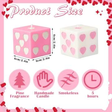 Threlaco 2 Pcs Heart Dice Candles 4 x 2.4 x 2.4 Inch Soy Wax Decorative Candles Aesthetic Dice Decor Handmade Danish Pastel Room Decor(White, Pink)