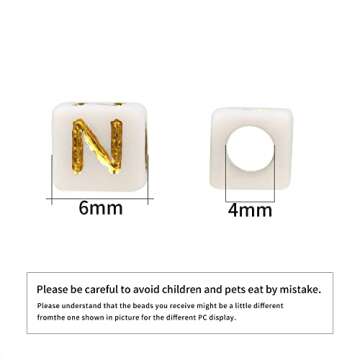 THRELE 1000pcs 6x6mm Square Letter Beads White Beads with Gold Alphabet for Bracelet and Jewelry Making