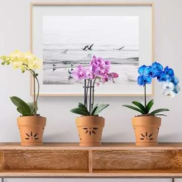 Thriving Thicket Handmade 3 Pack 6 inch Terracotta Orchid Pots with Holes and Saucers, Clay Orchid Planter Pots for Repotting, Small Terra Cotta Orchid Vase, Ceramic Plant Flower Pot Indoor Outdoor