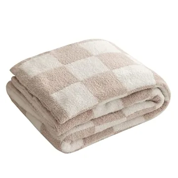 Throw Blanket with Checkerboard Plaid- Cozy Breathable All Seasons Soft Checkered Blanket Gingham Home Decor for Couch and Bed -Throw Size 51"x63",Light Khaki