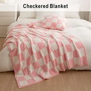 Throw Blanket with Checkerboard Plaid- Cozy Breathable All Seasons Soft Checkered Blanket Gingham Home Decor for Couch and Bed -Throw Size 51"x63",Pink