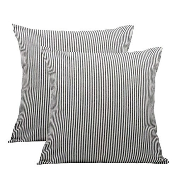 Elegant Throw Pillow Covers 18x18 - Set of 2 Rustic Linen Striped Cushion Covers for Home Decor