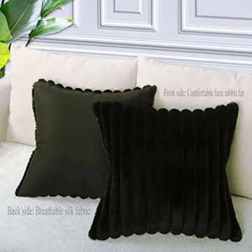 Throw Pillow Covers Decorative Set of 2, 20x20 Striped Plush Faux Fur Accent Pillows for Sofa Living Room (Black)