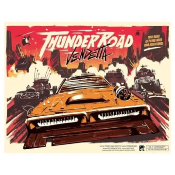 Experience the thrill as you navigate dangerous roads, unleash devastating car-to-car combat, and outsmart your opponents in an explosive showdown. The game cleverly combines racing mechanics with shooting elements, allowing players to shoot other cars, strategically slam them into hazardous terrain, or even call in air support for those critical moments. Thunder Road: Vendetta is designed for 2-4 players and delivers an engaging hour of gameplay that leaves everyone on the edge of their seats!