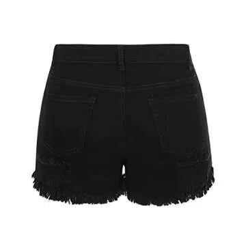 THUNDER STAR Women Mid Rise Ripped Stretchy Jeans Shorts Frayed Raw Hem Casual Denim Shorts Black1# L