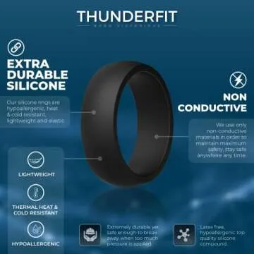 Show moreIntroducing the ThunderFit Men's Silicone Rings Wedding Bands - a perfect blend of elegance and comfort designed for the modern man. Crafted from high-quality silicone, these rings provide a flexible, lightweight alternative to traditional wedding bands, making them ideal for an active lifestyle. With a width of 8.7 mm and a thickness of 2.5 mm, these rings strike the perfect balance between style and durability. Available in classic and striped designs, they effortlessly complement any outfit, whether casual or formal.