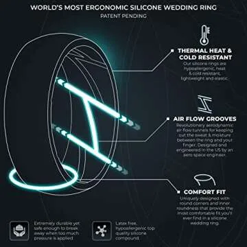 Show more Introducing the ThunderFit Silicone Wedding Rings for Men, where safety meets style without compromising on comfort! Designed for the modern man, these wedding rings are perfect for any occasion, from workouts at the gym to adventurous activities like climbing and trekking. Crafted with high-grade flexible silicone, these rings are built to withstand the rigors of an active lifestyle while offering a sleek and classic wedding band aesthetic. Their ergonomic design ensures a fit that is as comfortable as it is functional, making them a must-have accessory for anyone who values both commitment and an active life.