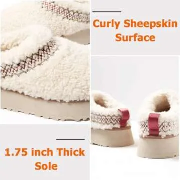 THUQ Platform Braid Slippers Fluffy Warm Fur-lined Mini Platform Slippers Fuzzy Anti-Slip Snow Boots for Women