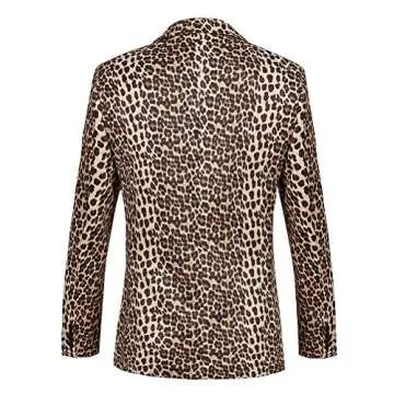 Show moreStep into the spotlight with the THWEI Mens Blazer Hipster Leopard Print Tuxedo, a luxury jacket designed to elevate your style game. Crafted from 100% polyester both in shell and lining, this blazer offers a sleek, comfortable fit that combines modernity with a classic touch. The eye-catching allover leopard print makes a bold statement, ensuring you stand out at any event. Featuring intricate details such as a notched lapel, padded shoulders, and multiple functional pockets—one chest pocket, two flap pockets, plus an interior pocket—this blazer is as practical as it is stylish. The long sleeves adorned with three buttoned end decorations and leopard print buttons contribute to its chic elegance, while the full lining and double vents enhance your ease of movement.