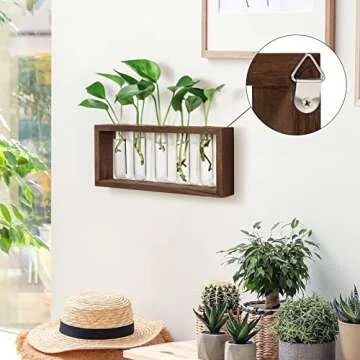 THYGIFTREE Propagation Tubes with Wooden Stand Wall Hanging Plant Propagation Station for Hydroponic Cuttings, Desktop Glass Planter Terrarium Vase Home Decor Gifts