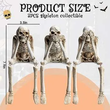 Show moreTransform your Halloween festivities with the Thyle Set of 3 Halloween Statues, a must-have collection for any spooky decor enthusiast! These enchanting skeleton figurines bring the infamous "See, Speak, Hear No Evil" theme to life, blending whimsy and fright in a way that's sure to leave a memorable impact. Crafted with meticulous attention to detail from top-grade resin, each statue boasts a charming bone-white finish that brings a touch of classic haunting elegance to your dime. With dimensions of approximately 7.9 x 3.5 inches, these lightweight figures offer effortless placement flexibility, allowing you to create a chilling atmosphere that delights and spooks guests alike.