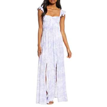 Tiare Hawaii-Hollie Cover-up Maxi Dress in Soft Indigo White Smoke | 100% Rayon Crepe | Tie-Dye Pattern | Fluttery Shoulder Straps | Casual Summer Collection for Women.