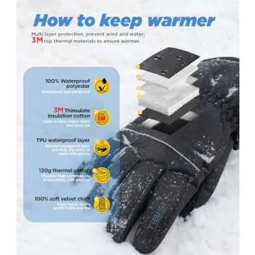 Show more Introducing the **TIBISI Waterproof Winter Ski Gloves**, expertly crafted to keep your hands warm and dry in extreme cold. Designed with advanced **3M Thinsulate insulation**, these gloves offer remarkable heat retention, making them ideal companions for ski trips and outdoor activities during winter months. The innovative double-layer waterproof system combined with a windproof shell shields your hands from moisture and icy winds. With a sleek, ergonomic design, these gloves fit snugly without sacrificing comfort, ensuring you stay protected from the elements while enjoying winter sports.