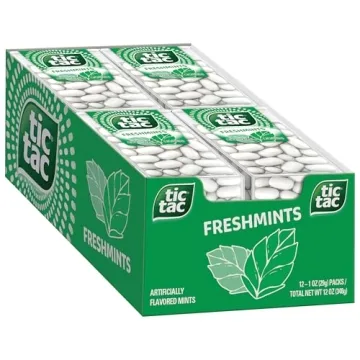Show moreTic Tac Freshmints offer an unparalleled refreshing experience with each mint featuring 100 layers of flavor encased in a delightful vanilla exterior. Known for their classic taste and loved by all, these 1-ounce packs provide an ideal solution for those moments when you need a quick refreshing burst. With a focus on quality, these gluten-free and GMO-free mints ensure that every bite is as enjoyable as the last. The portable packaging makes it incredibly convenient to carry them in your pocket or purse, allowing you to always be prepared to share or enjoy a mint post-meal. Whether you are looking to enhance your social confidence or simply enjoy a refreshing treat after coffee, Tic Tac Freshmints have got you covered.