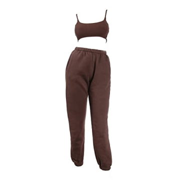 TIC TOC Women Sexy Plush Pants Lounge Set Soft Ribbed Backless Bralette Matching 90s Fit Sweatpants, BROWN, S