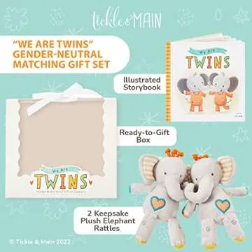 Compared to other twin gift sets available in the market, the Tickle & Main gift set stands out with its combination of practicality and emotional appeal. While other sets may only offer toys or books separately, this uniquely curated gift combines both in a charming, decorative package. The plush elephant rattles are not just toys, but also serve as sentimental keepsakes. Additionally, the engaging storybook enriches the twins' bedtime routine, inherently showcasing the spirit of togetherness that other products often lack. This commitment to quality and uniqueness makes it an exceptional choice.
