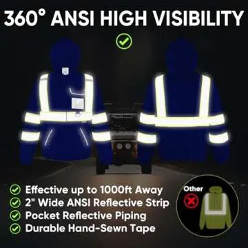TICONN Safety Hoodie Jacket, High Vis Reflective Safety Fleece Hoodie, PPE Gear for Cold Weather Meet ANSI III (Blue, XL)