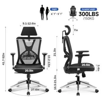 Show more Transform your home or office experience with the revolutionary Ticova Ergonomic Office Chair. Designed with the modern user in mind, this chair features an adjustable lumbar support that can be tailored in both height and depth. Its headrest is also fully adjustable, providing optimal neck support tailored to your preferences. The robust armrests not only adjust in multiple dimensions but are also padded for extra comfort, allowing you to find the perfect resting position for your arms.
