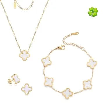 Crafted from high-quality 18K gold-plated material, the Clover Jewelry Set showcases exquisite craftsmanship that ensures durability and an eye-catching finish. Each piece in the collection maintains a stunning appearance without fading or tarnishing, even when exposed to water or perfume, as confirmed by loyal customers. With the bracelet’s adjustable length of 6.41 inches plus a 1.96-inch extension chain, this set is designed to fit comfortably on any wrist and complements any outfit—be it casual or formal.