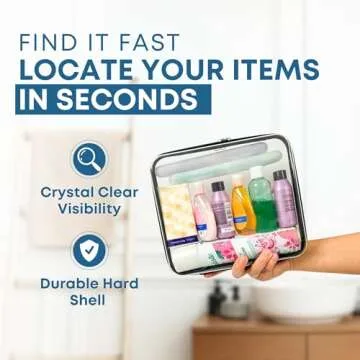 Tidy Pockets 2 Pack Medium Clear Hard Shell Zipper Case, Waterproof Zippered Hard Pouch, Transparent Zip Case, Hard Sided Organizer for Travel Essentials - Black