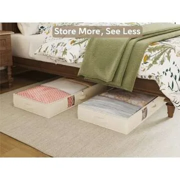 TidyCorner Soft Under Bed Storage Containers, Foldable Under Bed Storage Bags for Clothing, Blankets, Toys, Underbed Storage with Clear Window, Strong Zipper, 33" L * 17.5" W * 4.7" H, Beige, 4 Pack