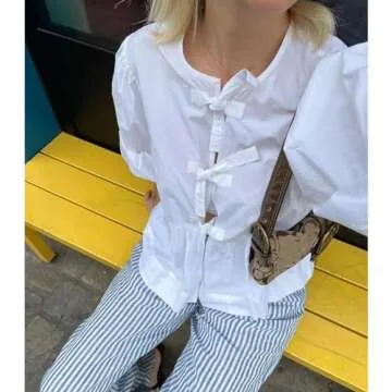 Tie Front Tops Women Y2k Leopard Print Peplum Babydoll Top 3/4 Length Puff Sleeve Coquette Tops Cute Going Out Tops