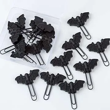 tiecawk 16Pack Halloween Bat Paper Clips Artificial Black Bat Bookmarks Soft PVC Bat Paperclips in Box for Halloween Festival Party Decoration Birthday Gift Home Office Supplies