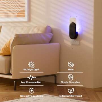 Show moreThe TIENBE Flying Insect Trap is your ultimate solution for a pest-free environment, working round the clock to keep your home free from annoying flying insects. This innovative 2-in-1 indoor insect trap not only effectively lures and captures pesky pests like mosquitoes, fruit flies, and gnats but also serves as a gentle night light, making it a perfect addition to bedrooms, kitchens, and living rooms. Designed with a modern aesthetic in mind, the trap's sleek black finish will integrate seamlessly into any decor while efficiently performing its dual functions. With its easy plug-in setup, you can say goodbye to pesky flying insects and sleep soundly without the buzzing!