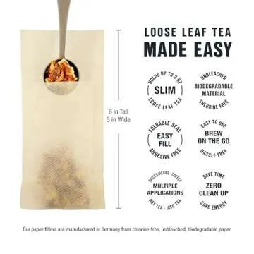 Tiesta Tea - Loose Leaf Filters | Disposable Infuser, Natural Unbleached Paper, Steeps Hot, Iced & Coffee, Easy Fill Single Serve Filter for One Cup | 100 Count Empty Tea Bags