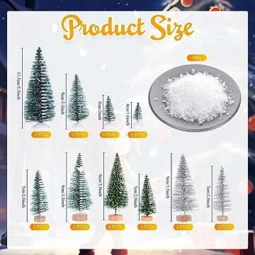 Tigeen 28 Pcs Mini Christmas Bottle Brush Trees 1.6''-5.3'' Artificial Tiny Sisal Snow Trees Miniature Christmas Village Trees Diorama Trees with 3.6 Oz Fake Snow for Winter Town Landscape DIY Craft