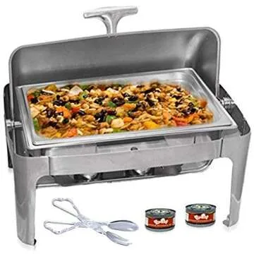 ... Show more Introducing the ultimate solution for your catering and hosting needs: the **3 Chafing Dish Set**! This complete buffet set not only elevates your dining experience but also brings elegance to any occasion. Crafted from **durable stainless steel**, it features a stunning mirror satin finish that enhances its aesthetic appeal. The chafing set includes a full-size water pan, a food pan, a sleek roll-top cover, and two fuel holders with covers, ensuring that you are well-equipped for any culinary event.