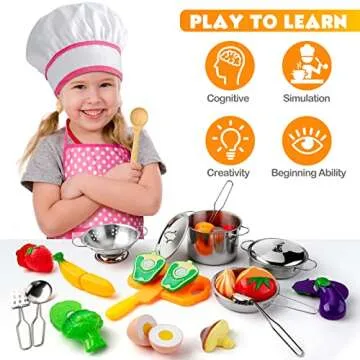 Show moreIf you're searching for a gift that sparks creativity and encourages role-playing, the Tigerhu 26PCS Play Kitchen Accessories is the ultimate solution! This delightful kitchen set comes with everything your child needs to unleash their inner chef. Featuring 26 high-quality pieces, including stainless steel pots and pans, a colorful apron and chef hat, and realistic cutting food toys, this set combines fun with essential learning. Perfect for toddlers and children aged 3 and up, this gift not only entertains but also helps build essential life skills.