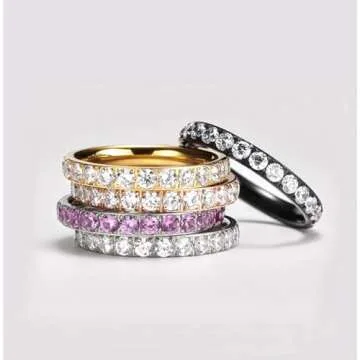 TIGRADE 3mm Women Titanium Engagement Ring Cubic Zirconia Eternity Wedding Band Size 3 to 13.5(Silver, 7)