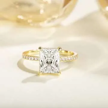 TIGRADE 4CT Engagement Ring for Women Radiant Cut Cubic Zirconia Wedding Band CZ Promise Anniversary Ring Size 3-13, Gold, Size 6.5