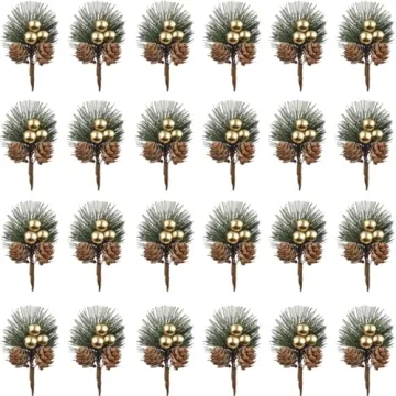 Elevate your holiday decor with the TIHOOD 25PCS Artificial Pine Picks, designed to bring sophistication and festive cheer to your celebrations. This exquisite collection features elegant pine needle branches adorned with enchanting gold berries and charming pinecones that look stunning on your Christmas tree or in a DIY wreath. Crafted with care, these decorations perfectly mimic the lifelike essence of real pine branches, providing a visual delight that will impress your guests and enhance...