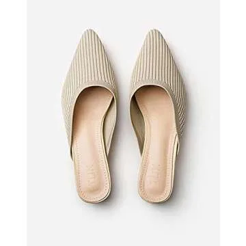 TIJN Heels,Pointed Toe Mules for Momen with Low Heel, Breathable Mesh Knit Slip On Flat Sandals,Helka,8.5