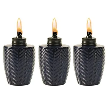 Transform your outdoor spaces into serene havens with the TIKI Brand Glass Table Torch in the innovative Herringbone Blue design. These stunning 5.75-inch table torches blend aesthetics and functionality, ensuring your backyard, patio, or garden is both inviting and beautifully illuminated. Made by TIKI, a trusted name in outdoor ambiance, these gorgeous ceramic bottles don’t just look great; they offer practical solutions for keeping pesky insects at bay, making your evenings more enjoyable.
